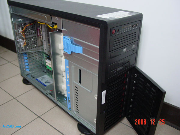 測試機器是由Supermicro組裝的,主機板型號為X7DB8,可以安裝兩顆四核心或是雙核心的Xeon處理器,具有16個記憶體插槽支援到64GB的記憶體。原廠網址