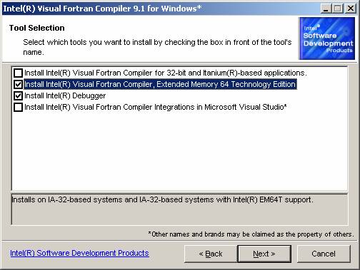 如 果想在Windows環境下編譯程式可以參考下面的安裝指引,首先當然是先安裝好Windows 64位元的版本,之後需要先到Microsoft網頁上下載Platform SDK進行安裝,之後就可以安裝Intel Fortran Compiler for EM64T的版本。